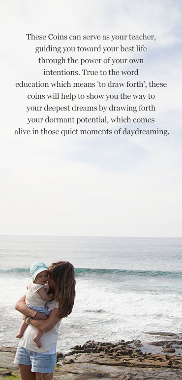 These intention coins and her meditations have been designed with the hope that you too can access the same universal power of intention to achieve your dreams and live your life on purpose.